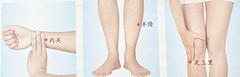 1. 取穴按摩:合谷、内关、足三里。按摩时,两手可以交替按摩,用拇指屈曲垂直按在穴位上,做一紧一松的按压,频率为每 2秒钟 1次,即每分钟 30次左右;重要的是按压的力量要有一定的强度,穴位下面要出现酸、麻、胀的感觉,有一种即可,即出现“得气”现象。在安静状态下,每天 3次,每次 15分钟,每个穴位 5分钟(两侧各 2 -- 5分钟)。